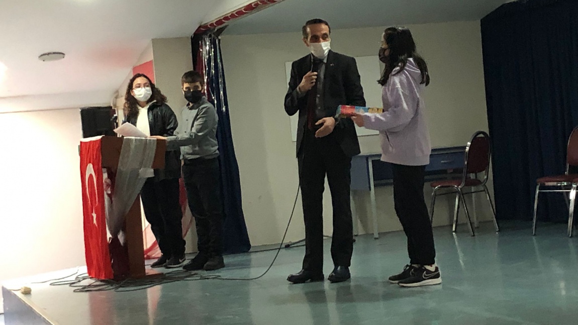 "İstiklal Marşı'nı Güzel Okuma Yarışması" 1.si 7/C sınıfından Zeynep Türkmen oldu. Öğrencimize ödülünü okul müdürümüz Orhan Bahçeci takdim etti. Öğrencimizi tebrik ediyoruz.